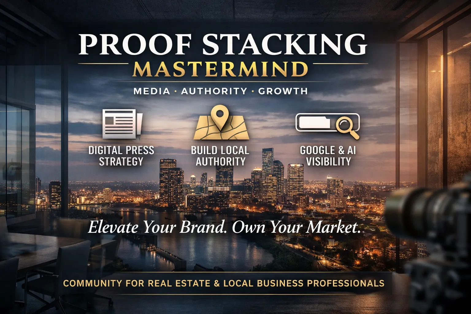 The Proof Stacking Mastermind teaches how to use digital press and strategic positioning to stand out, attract better clients, and become the trusted choice before the first conversation. Inside the free community, you’ll learn how to build local authority, show up in Google and AI search, and focus on the few actions that actually drive revenue.