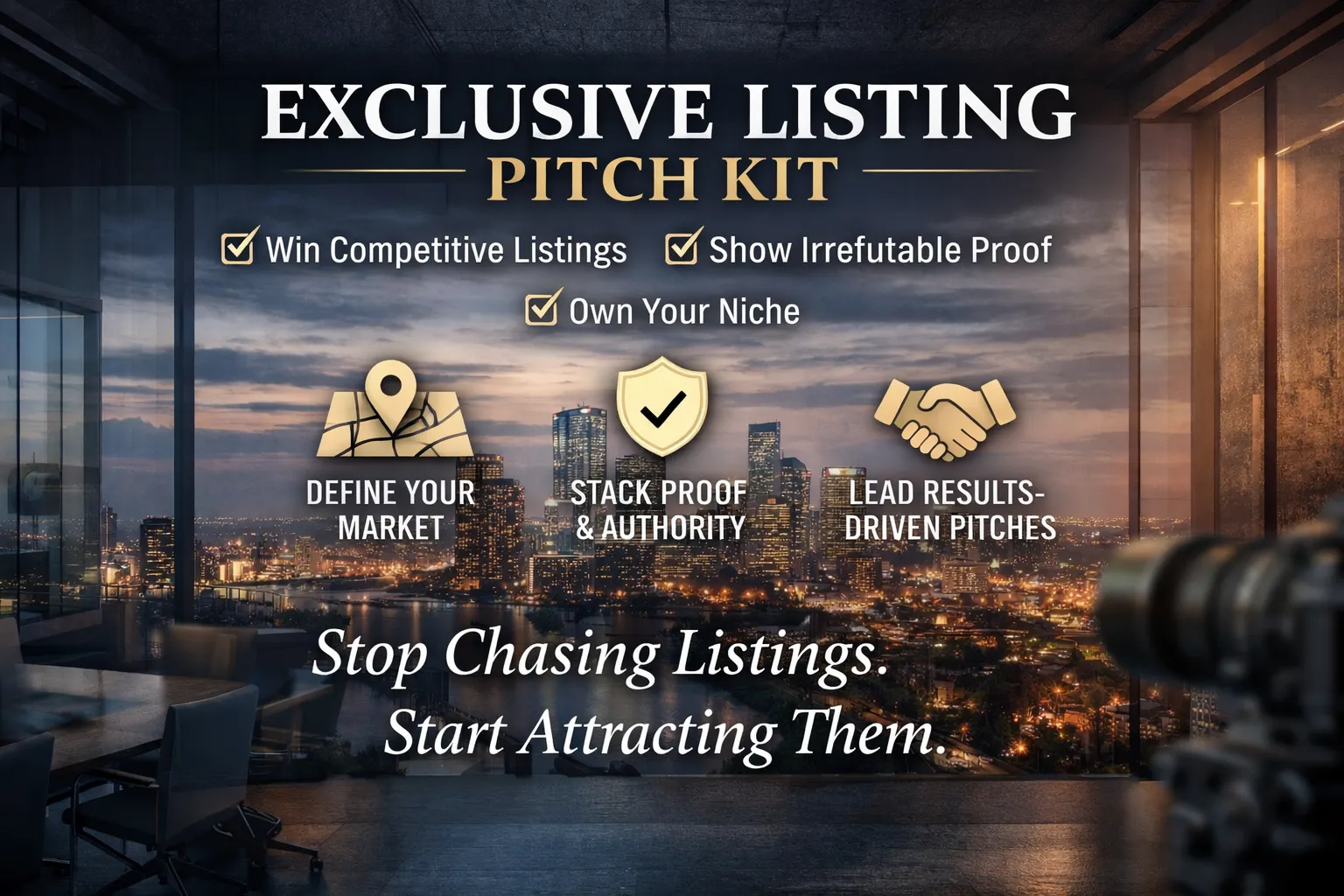 The Exclusive Listing Pitch Kit is a structured system designed to help real estate professionals stop chasing listings and start attracting them. It focuses on positioning, proof, and niche authority so sellers see you as the specialist before the first meeting.